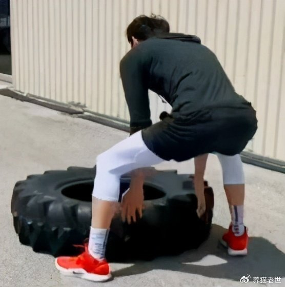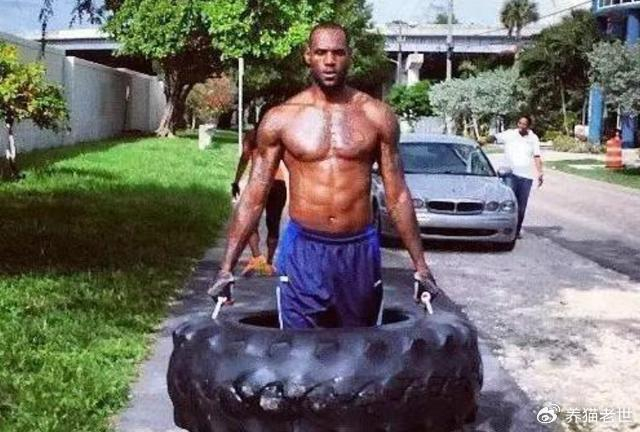 首先我们来看看詹姆斯,都知道詹姆斯是NBA出了名的训练狂魔,不论放假在家还是出门旅行都会挤出时间来训练,而这也是他在36岁的年龄还能保持超一流竞技状态的重要原因。事实上,詹姆斯早在前几年就已经开始用轮胎训练,甚至还特意为此拍了一组写真。从图中可以看出,詹姆斯所用的是卡车轮胎,重量大约在80-120公斤。这样的重量詹姆斯还能面不改色的提着走,不得不让人感叹他那恐怖的肌肉力量。
